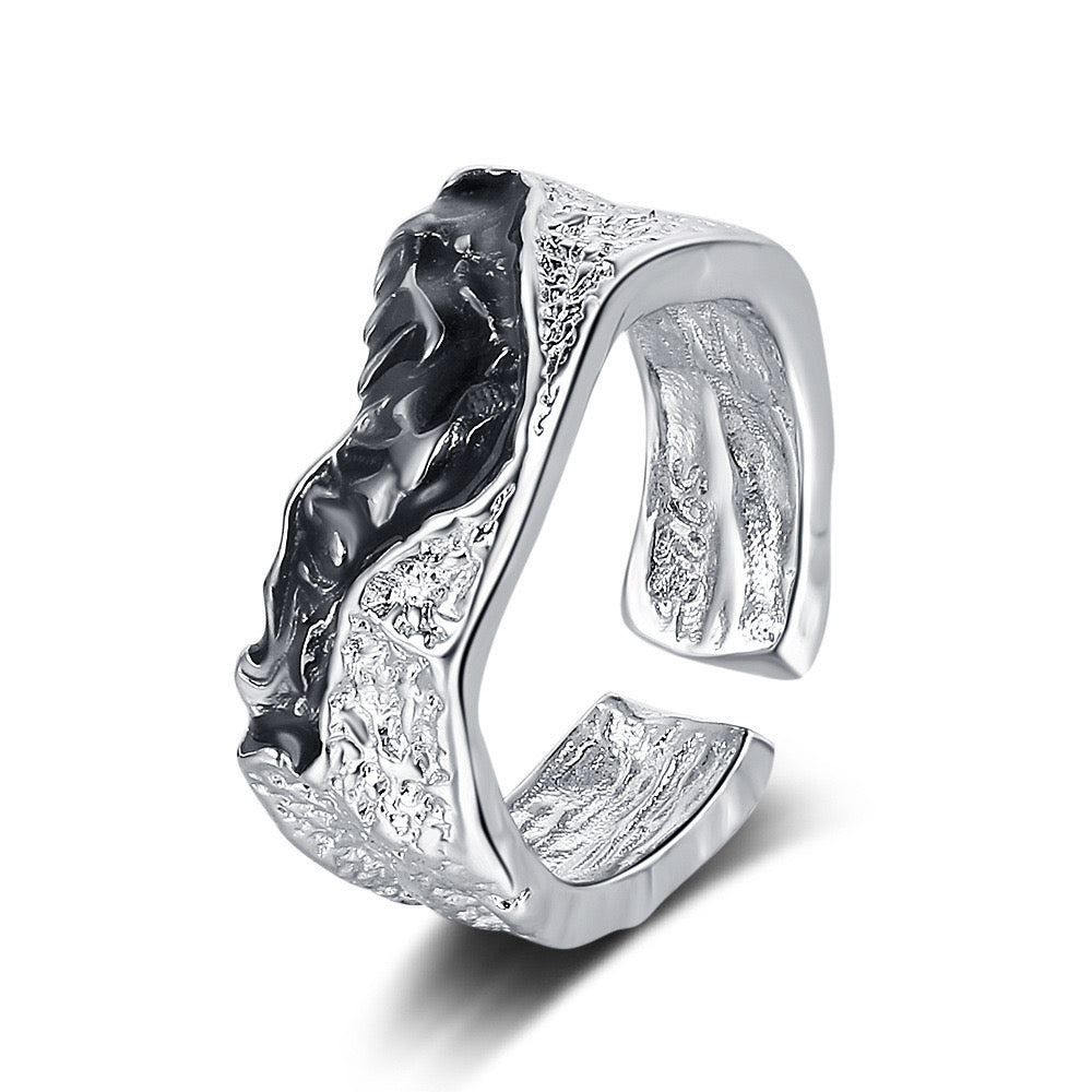 Кільце Molten — це втілення сили природної стихії. Його дизайн нагадує застиглу лаву або глибини скель, створюючи гру текстур і блиску. Цей аксесуар має мужній характер, проте пасуватиме і до витонченого, і до сміливого образу. Регульований розмір забезпечує комфортне носіння.