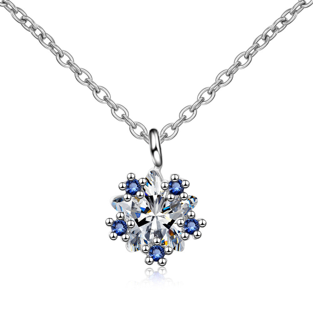 Підвіска Snowelle у формі сніжинки прикрашена прозорими фіанітами та акцентами з насичено-синіх камінців. Вишукане поєднання кольорів створює ефект легкого зимового сяйва. Ідеальний вибір для тих, хто любить витончені та святкові акценти в образі.