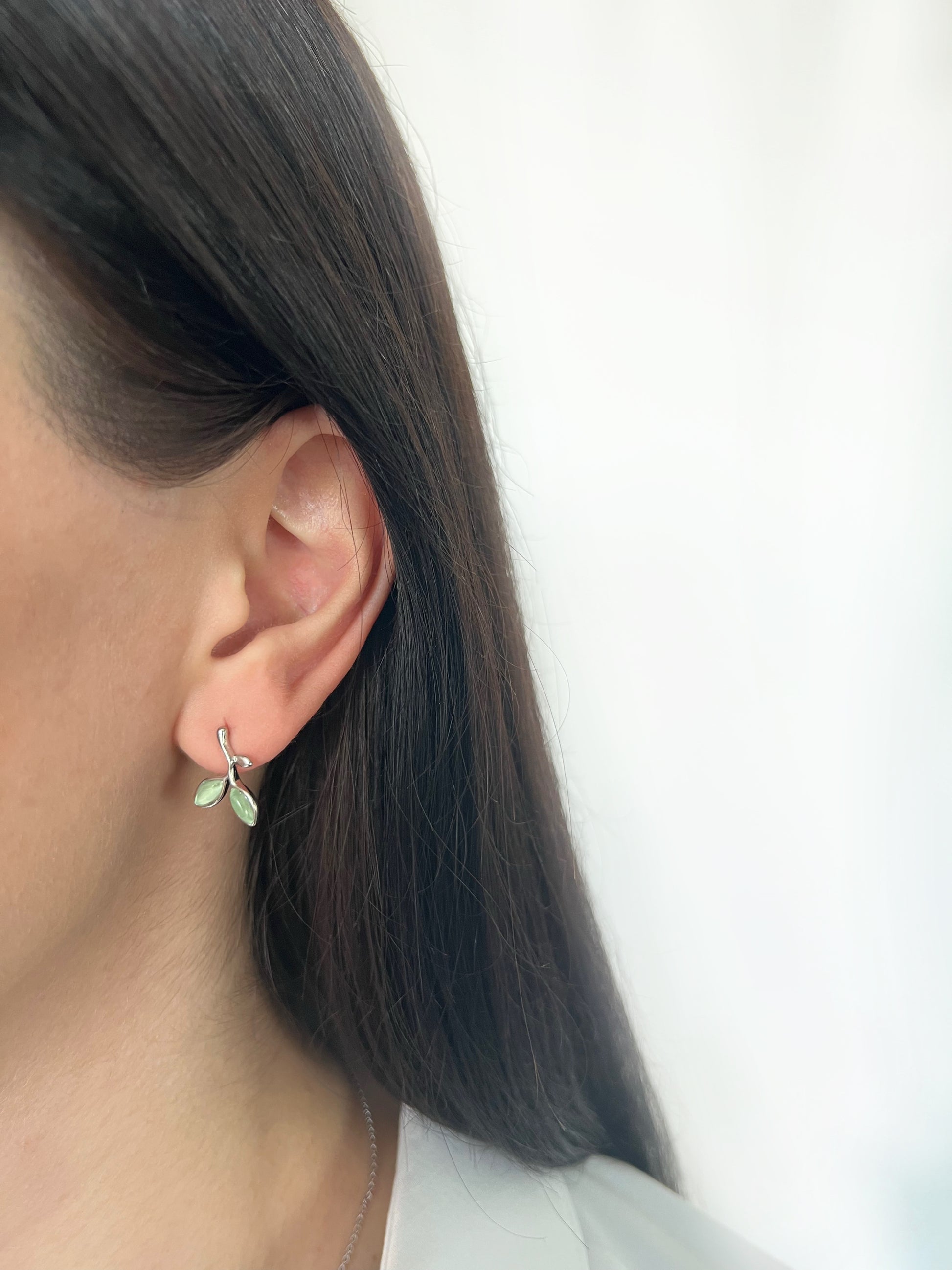 Сережки Petals — це втілення природної елегантності та вишуканості. Дизайн у вигляді гілочки з листям, прикрашеної м’якими зеленими вставками, символізує гармонію природи і спокій. Ці сережки виглядають надзвичайно витончено, роблячи акцент на вашій природній красі та індивідуальності.